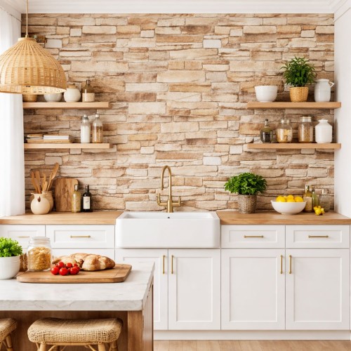 Тапет 3D тухли капучино C1, самозалепващo пано, 70 х 77см